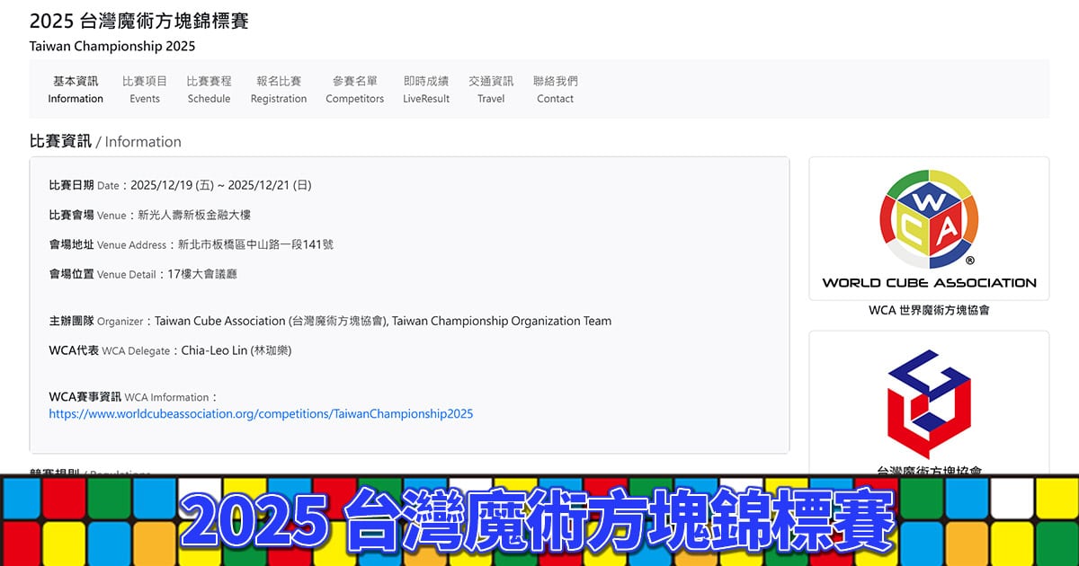 WCA賽事資訊 WCA Imformation:https://www.worldcubeassociation.org/competitions/TaiwanOpen2022