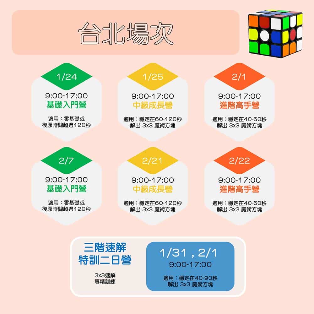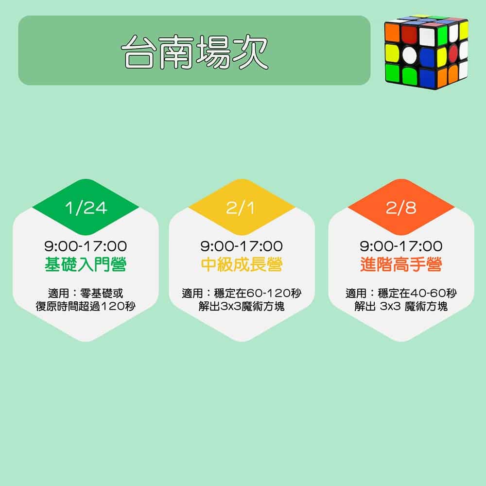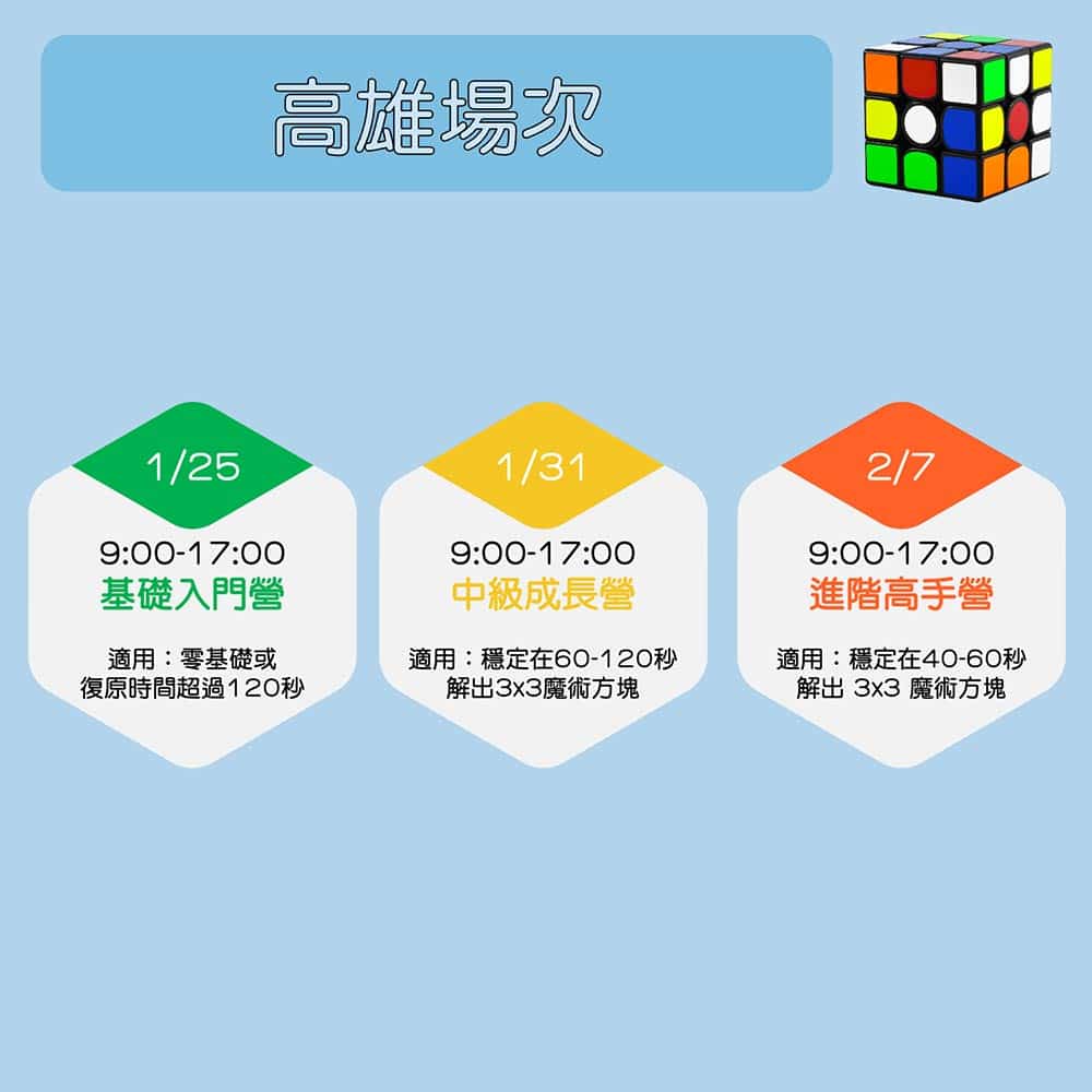 課程說明:基礎入門營 | 中級成長營 | 高手進階營 | 三階速解強化特訓二日營